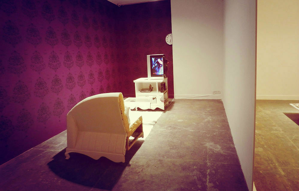 Came across this really interesting display of art during an art show, which I visited recently where everything was cut in half from wall decor to canapé, the tables, wall clock, much to my surprise the television with half the screen and half a dvd player into the bargain.