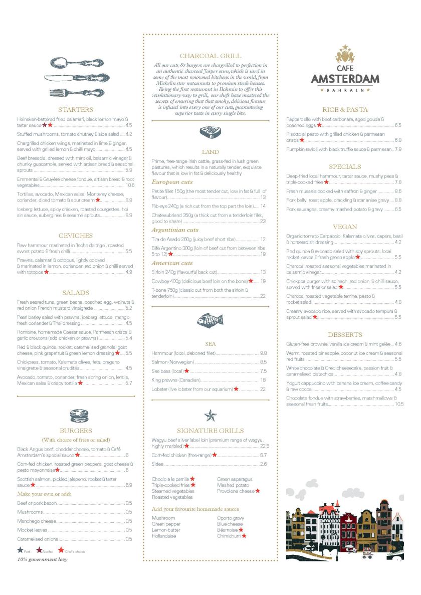 In the heart of Bahrain’s fine dining neighbourhood, Café Amsterdam’s menu is built on modern European and New American cuisine. The menu includes innovative gastronomic creations, decadent desserts and original beverages. The award-winning Café Amsterdam offers a dining and nightlife experience under one roof with a sleek, state-of-the-art lounge, a bright and spacious glass conservatory and a lovely garden for al fresco dining.