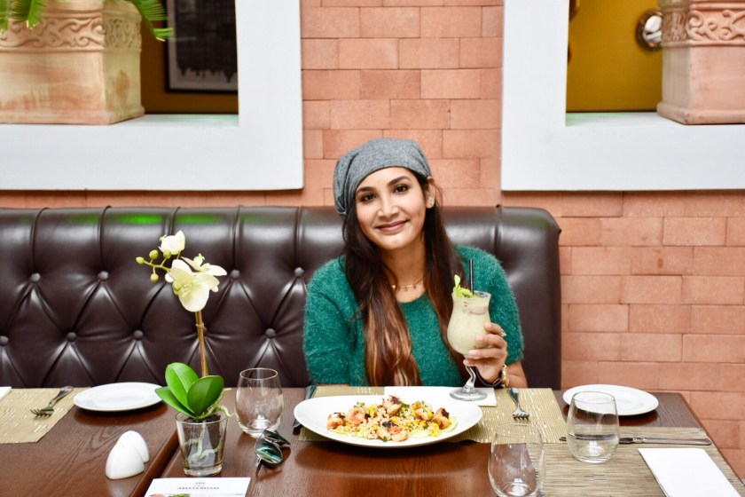 Enjoying my healthy Barley Salad with pearl barley mango salsa and thai dressing and my Prince of the Middle East (Mocktail) by Bartender Tanmay