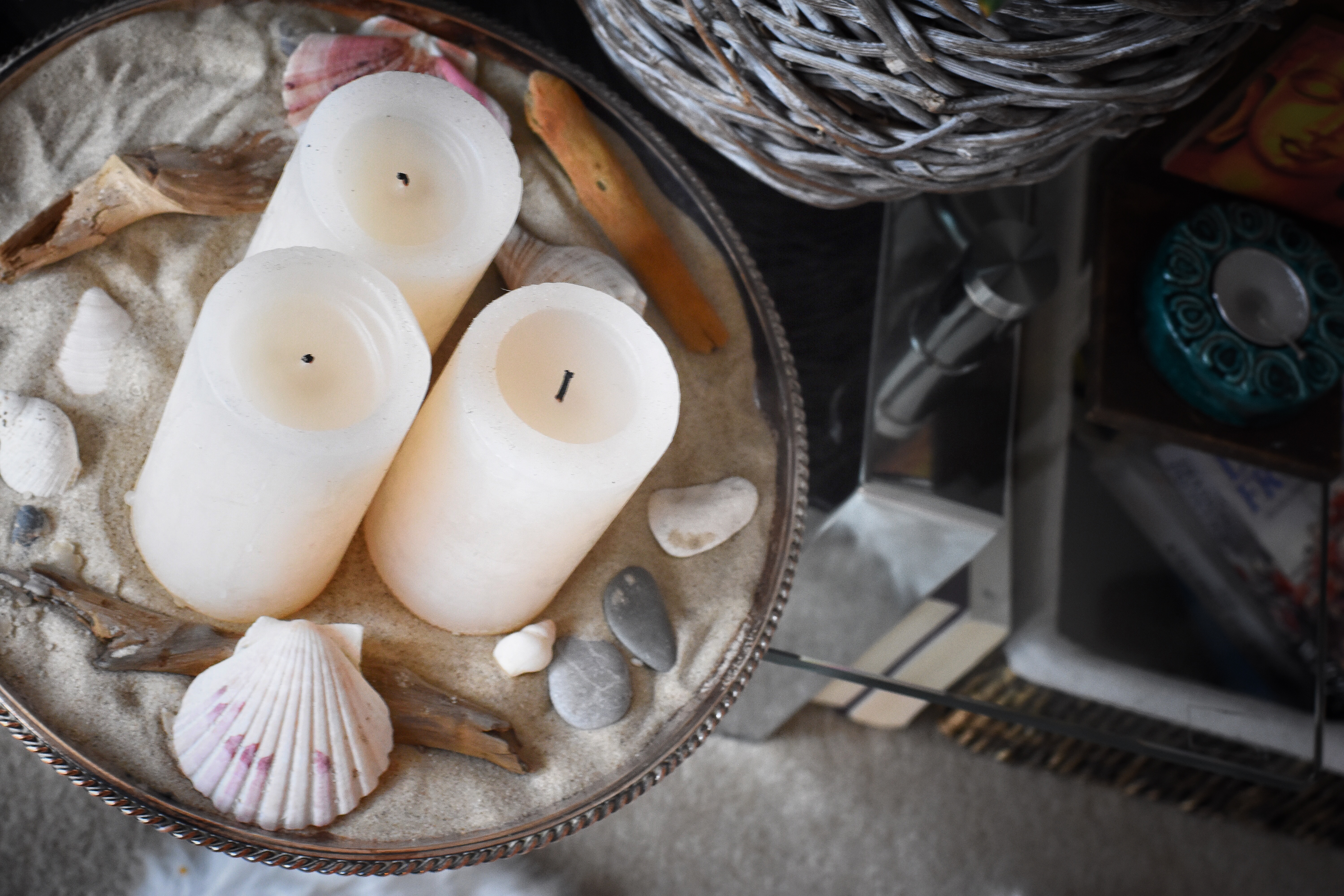 Nature: Bringing nature into your space will optimize your relaxation so much – being surrounded by natural elements has been proven to reduce stress and anxiety as it helps to ground us back to the earth. Firstly, you can invest in some houseplants for greenery. It’s also a good idea to incorporate some woven products or decorations, which is also a key element of nature. Lastly, you may want to invest in some kind of water feature like mine (Mermaid Goddess Shrine/Altar with beach sand, stones, shells, coral, candles) – they are calming to look at.