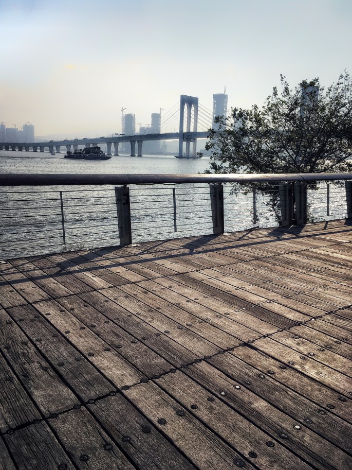 Early morning picturesque view of one of the pools from 9th-floor room (this was taken the next day)