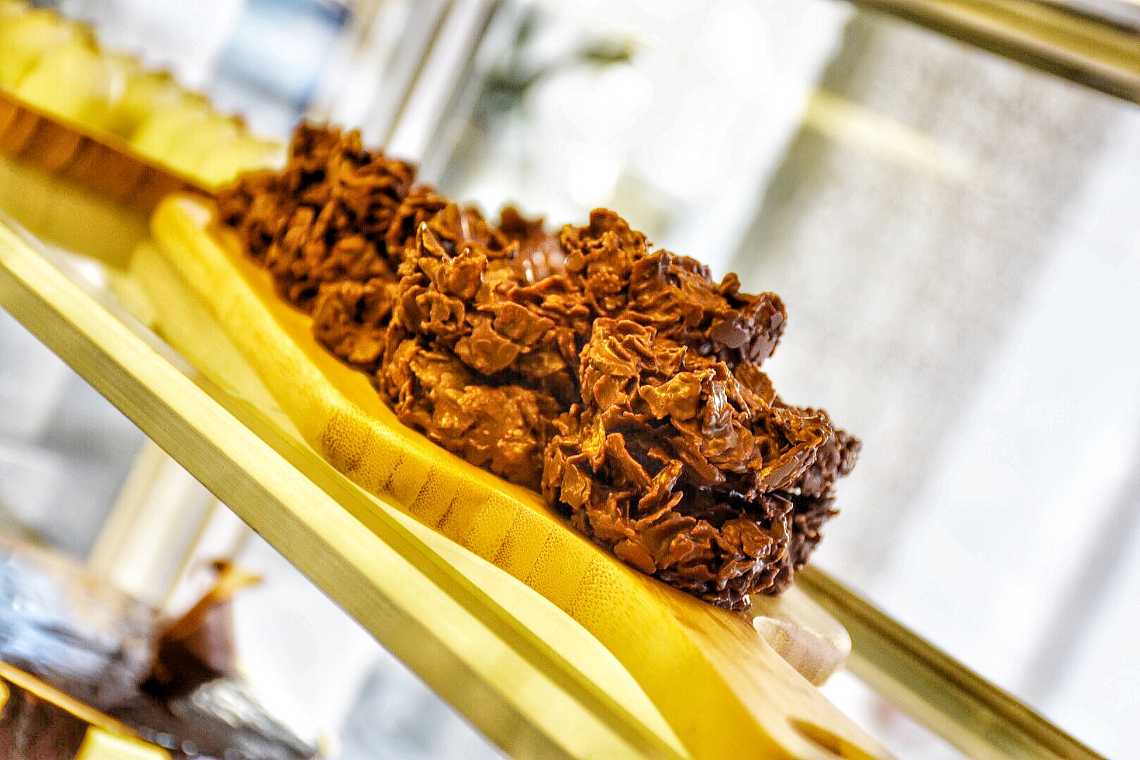 The glass shelves of the shop are filled with finished cakes ready to be picked up. For the visitor looking for a quick snack, pastry carts are always filled with sweet delights.