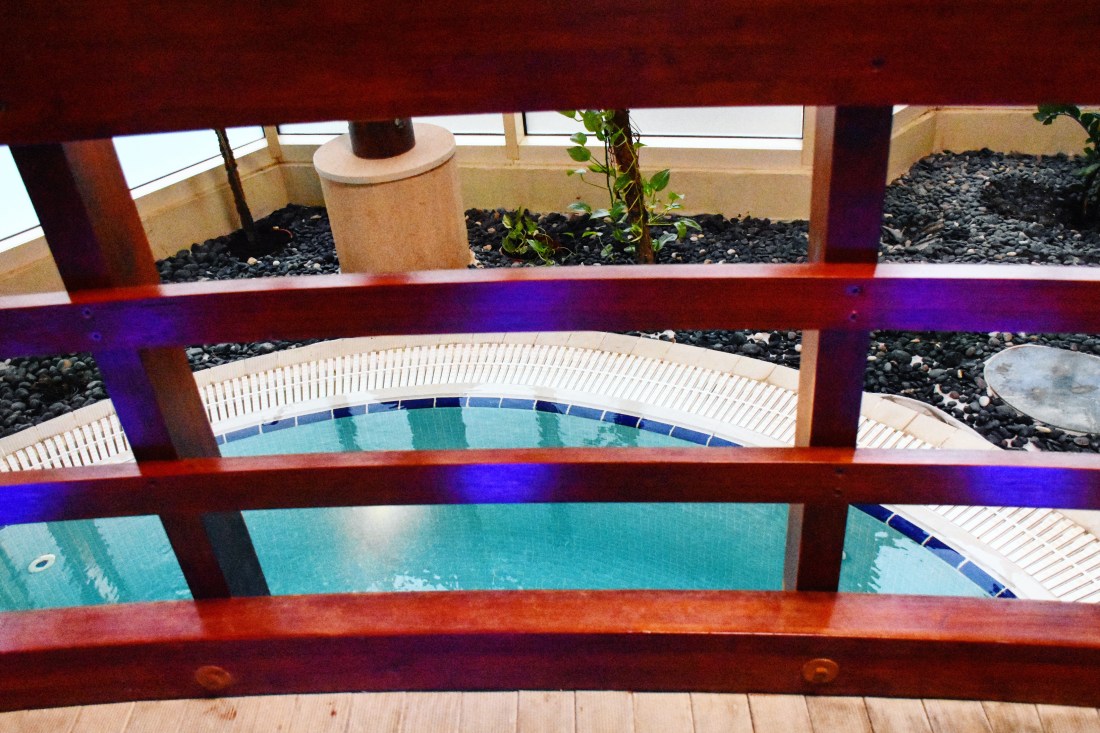 The pools were very nicely designed and the scenery was quite tropical. Women can also enjoy their own indoor pool at the luxurious spa and wellness center. There is a large gym, spa and treatment rooms for men next to the pool. I didn’t get time to use the gym; however, my husband did. After a workout in the fully equipped fitness center, he managed to get the requested photos for me.