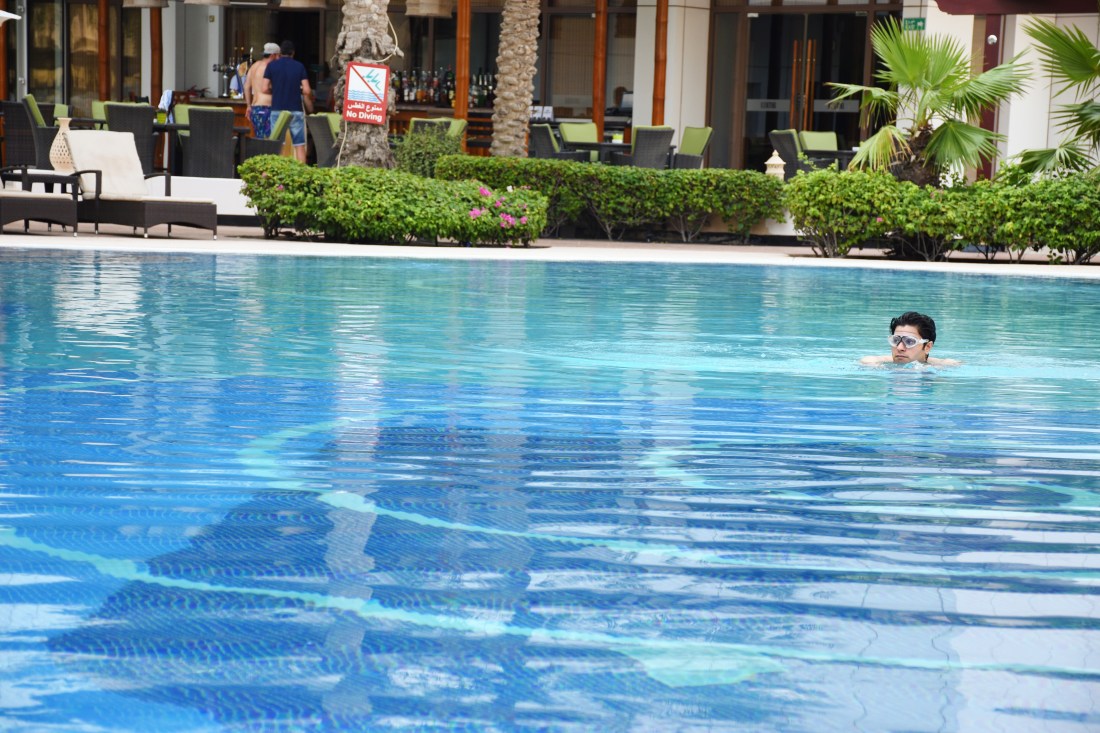 At around 9 am we reached the pool. When we reached the pool, it was partially crowded while some people occupied the pool bar. Diplomat Radisson offers 4 elegant swimming pools.