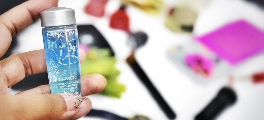 Reviewing this pretty light blue bottle of a product – Double-Action Eye Makeup Remover called Lancome Bi-Facil.