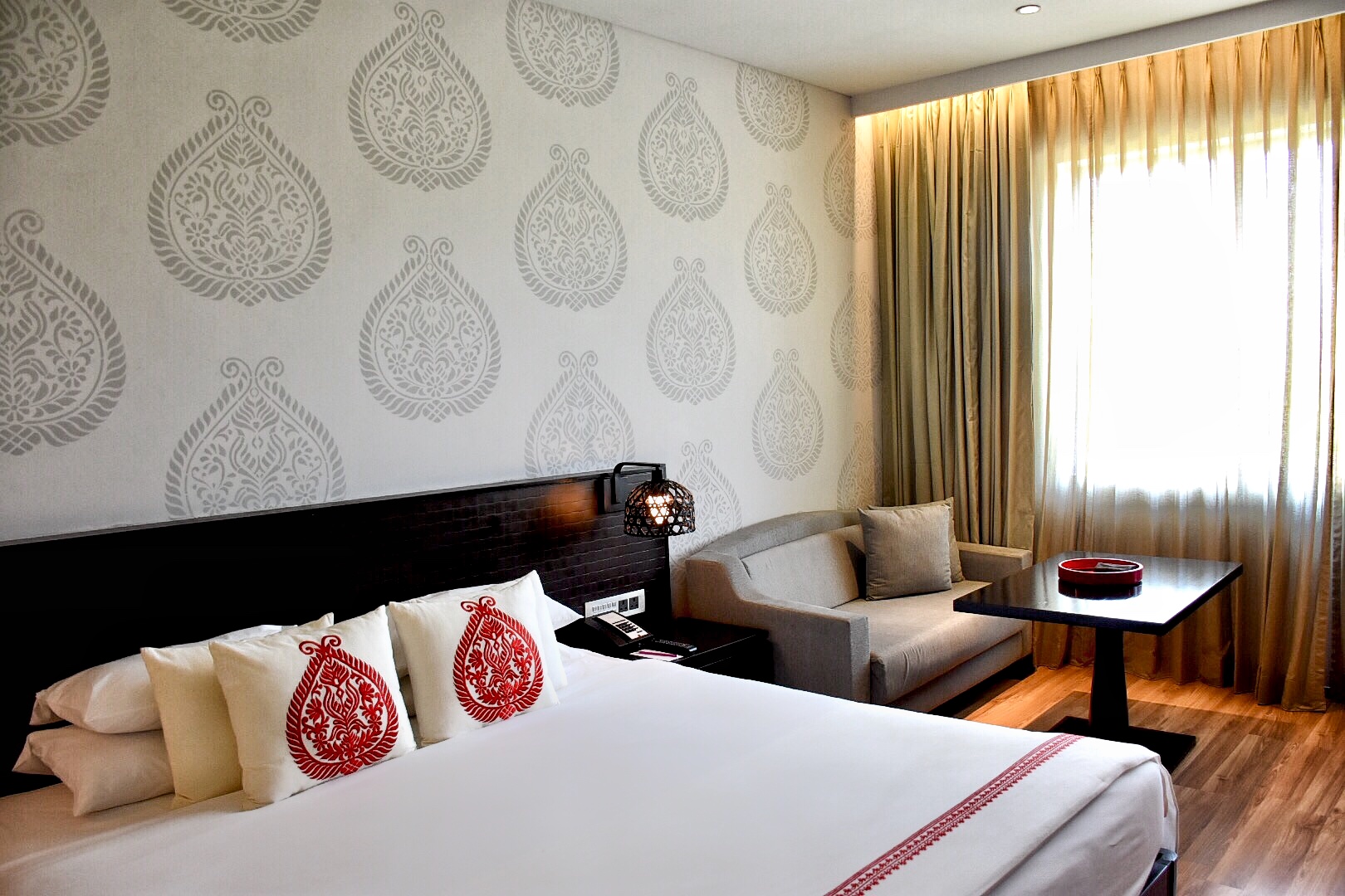 My tour included of one of the Deluxe Delight Rooms on the 6th floor. It had all standard amenities that you expect of a luxury hotel. The rooms boast of traditional carved wooden and bamboo furniture, royal interiors, abundantly stocked mini-bar, sleek workspace and picturesque hill and pool views. Can anything get better than this? (yes a week long stay!….on my wish list) I loved everything from the textured walls, to the elegant bed linens, everything was masterfully styled with motifs that symbolise the Ahom dynasty and is a beautiful amalgamation/confluence of all Northeastern tribes and generations. The perfect blend of modern with traditional roots.