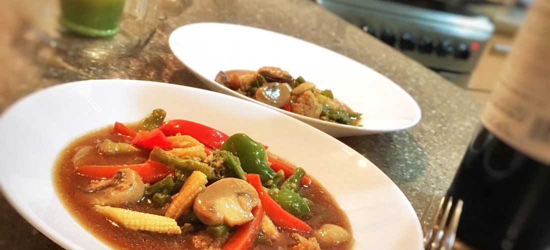 -Combine ‘stir fry sauce’ ingredients together in a cup or bowl. Stir well to dissolve the sugar. Taste-test, keeping in mind that the first taste should be spicy-salty, followed by sweetness and the rich taste of the coconut milk.